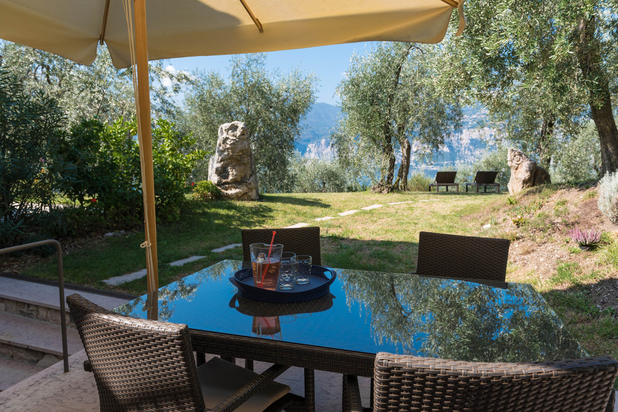Nuova ristrutturazione con arredo, ha una superficie abitativa di ca. 28 mq, una terrazza di ca. 15 mq con vista lago e un ampio prato per il relax.